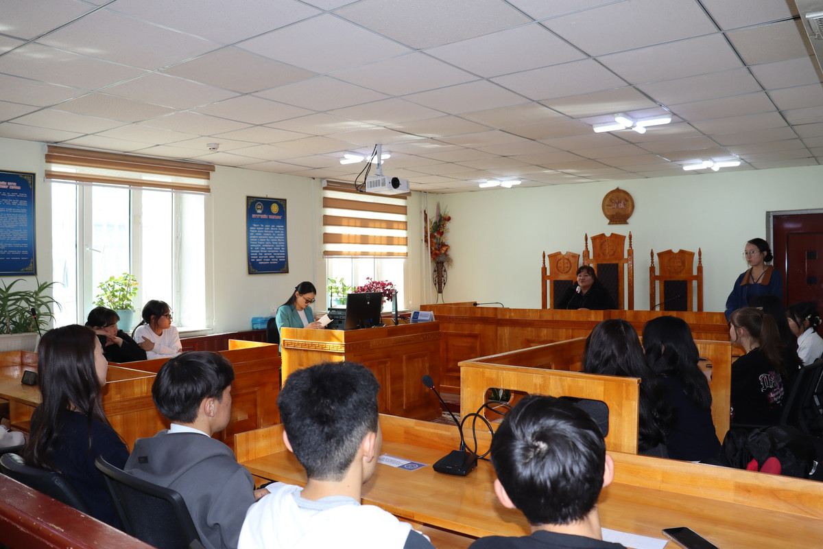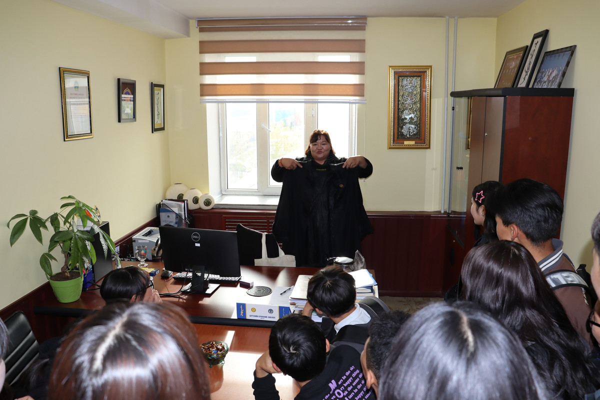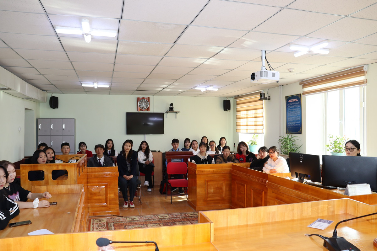 “Эрх зүйч” мэргэжлийг сонгож байгаа 10-12 дугаар ангийн сурагчдыг шүүхийн үйл ажиллагаатай танилцуулах арга хэмжээг зохион байгууллаа. Говь-Алтай аймаг дахь Сум дундын анхан шатны шүүхийн Ерөнхий шүүгч Н.Оюунбилэг сурагчидтай шүүхийн тухай ойлголт, эрх зүйч мэргэжлийн онцлог болон хувь хүний төлөвшил, ёс зүйн талаар ярилцав. Мөн Захиргааны хэргийн анхан шатны шүүхийн шүүгч Ч.Оюунсүрэн сурагчдыг өрөөндөө хүлээн авч, сурагчдын сонирхсон асуултад хариулж, амжилт хүслээ. Шүүхийн байр, үйл ажиллагааг танилцуулсны дараа сурагчдыг зөрчлийн хэргийн нээлттэй шүүх хуралдаанд ажиглагчаар оролцуулав.