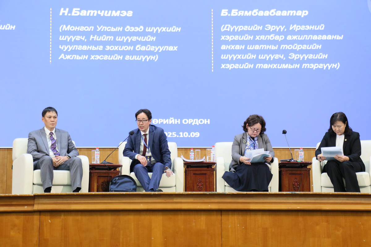- Хэлэлцүүлэг 2: Шүүх эрх мэдлийн хүрээнд дагаж мөрдөх хууль тогтоомжийг боловсронгуй болгох асуудал,