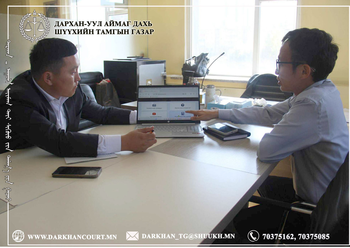 Хараагүй болон сул хараатай иргэдэд шүүхийн үйл ажиллагааг таниулах, мэдээллээр хангах, тэдний шүүхэд мэдүүлэх эрхээ хэрэгжүүлж нэхэмжлэл, хүсэлт, өргөдөл, гомдол гаргах, зөрчигдсөн эрхээ сэргээлгэх, нийгмийн харилцаанд оролцоход нь дэмжлэг үзүүлэх зорилгоор Монголын Хараагүйчүүдийн Үндэсний Холбоонд хандан байгууллагын цахим хуудаст үнэлгээ хийлгэлээ. Байгууллагын цахим хуудаст https://www.darkhancourt.mn/ үнэлгээ хийлгэж, холбогдох хөгжүүлэлтийг хийснээр хараагүй иргэдийн шүүхтэй харилцах, үйлчилгээний хүртээмж, хууль эрх зүйн мэдлэгийг нэмэгдүүлэх ач холбогдолтой юм. Тус шүүхийн Тамгын газрын Мэдээллийн технологийн мэргэжилтэн Б.Алтанбаяр Монголын Хараагүйчүүдийн Үндэсний Холбоотой хамтран ажиллаж, туршлага судаллаа. Хамтран ажилласан Монголын Хараагүйчүүдийн Үндэсний Холбооны Ерөнхий нарийн бичгийн дарга Ч.Очирренчин танд талархал илэрхийлье.