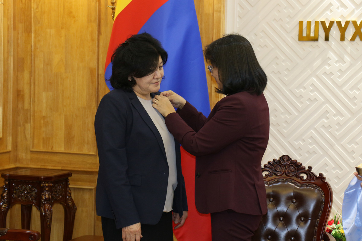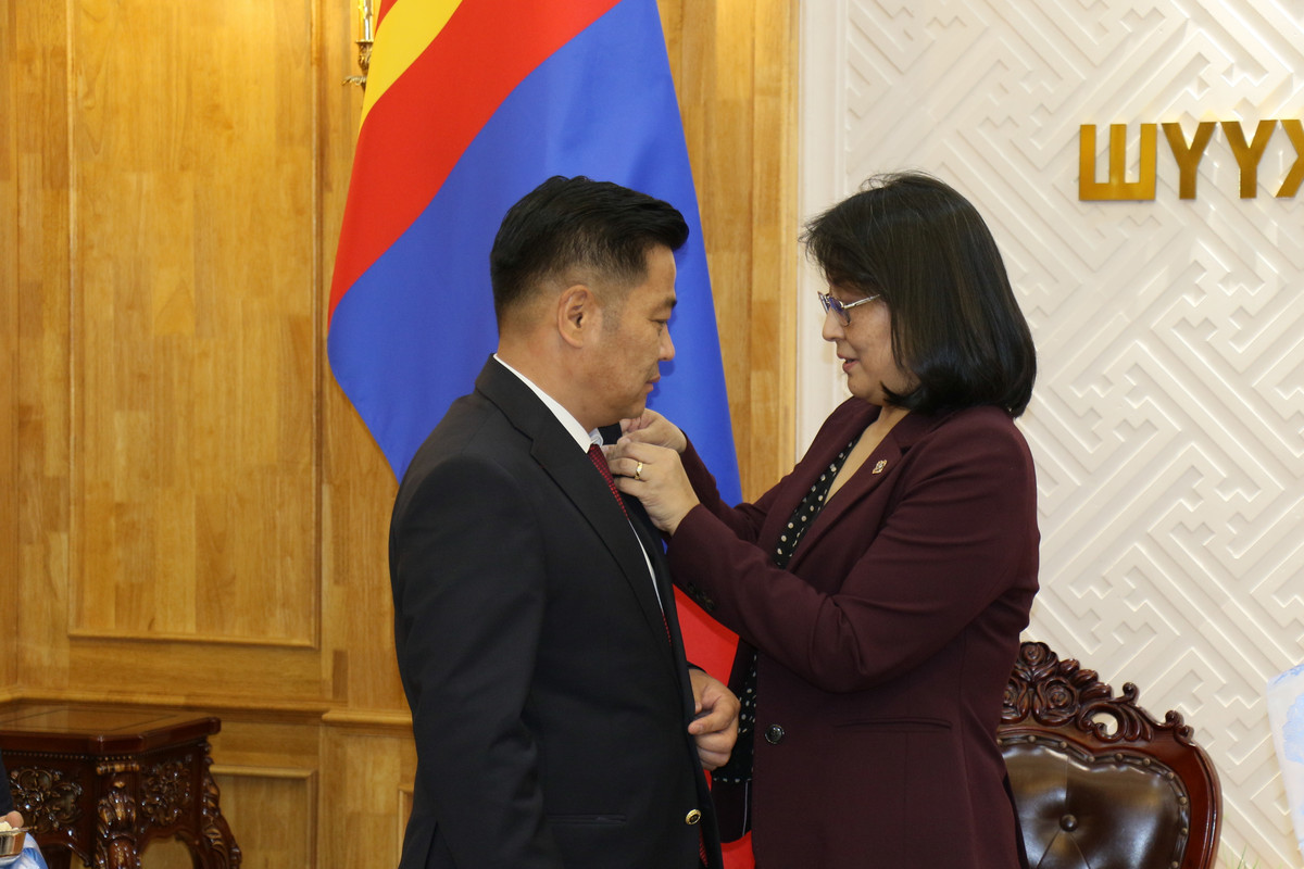Шүүхийн ерөнхий зөвлөлийн дарга болон гишүүд өнөөдөр (2025.10.13) Нийт шүүгчийн III чуулганаас сонгогдсон гишүүн Г.Даваадорж, О.Жанчивнямбуу, П.Золзаяа, М.Мөнхдаваа, Л.Өлзийжаргал нарыг хүлээн авч, хүндэтгэл үзүүлэн, энгэрийн тэмдэгийг гардуулав.