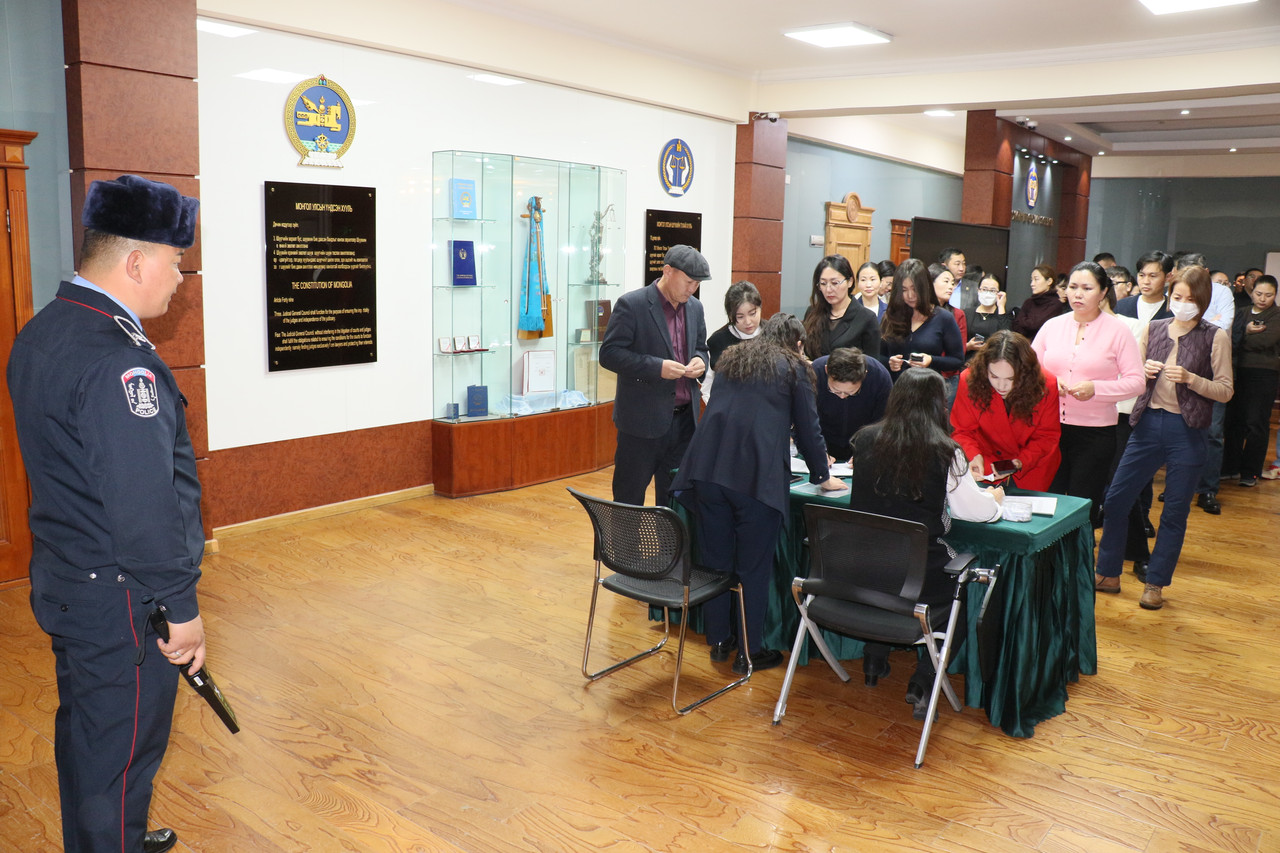 Шүүхийн ерөнхий зөвлөлийн 2025 оны 11 дүгээр сарын 3-ны өдрийн 285 дугаар тогтоолоор анхан шатны шүүхийн шүүгчийн 37 сул орон тоонд нэр дэвшигчдийг бүртгэсэн. Батлагдсан хуваарийн дагуу өнөөдөр (2025.11.15) Эрүү, Иргэний хэргийг харъяалан шийдвэрлэх шүүх, Нийслэл дэх Гэр бүл, хүүхдийн хэргийн анхан шатны тойргийн шүүх, Захиргааны хэргийн анхан шатны шүүхэд нэр дэвшигчдийн Үндсэн хуулийн эрх зүйн мэдлэг шалгалтад 149 нэр дэвшигч оролцлоо.