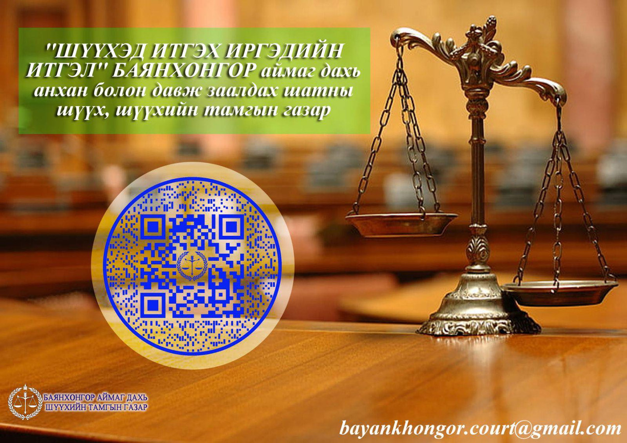 Анхан болон Давж заалдах шатны шүүхийн Тамгын газар иргэдээс ‘ШҮҮХЭД ИТГЭХ ИРГЭДИЙН ИТГЭЛ’’ судалгаа авав. Судалгааны гол зорилго нь шүүхэд итгэх иргэдийн итгэлийн түвшинг тодорхойлох, шүүхийн ил тод байдлыг хангах, шүүхэд итгэх иргэдийн итгэлийг дээшлүүлэх зорилготой бөгөөд цаашид шүүхийн үйл ажиллагааг сайжруулахад авч хэрэгжүүлэх арга хэмжээг тодорхойлох юм.