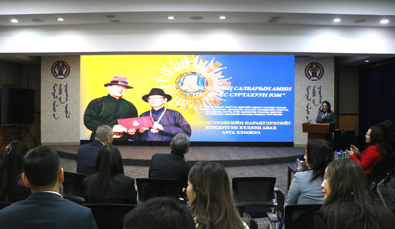 “Чингис хаан” тэргүүн зэргийн одонт, академич Содовсүрэнгийн Нарангэрэл Шүүхийн ерөнхий зөвлөлийн дарга болон гишүүд, шүүгч, шүүхийн захиргааны албан хаагчдад талархал илэрхийлэв. Эрхэм хүмүүний аав Содовсүрэн нь 16 насандаа Улаанбаатар хотын Шүүхийн нарийн бичгийн дарга, 18 насандаа Улаанбаатар хотын Шүүхийн орлогч дарга, 19 насандаа Булган, Сэлэнгэ аймгийн шүүхийн даргаар томилогдон ажиллаж байсан түүхтэй. Мөн Монгол Улсын дээд шүүхийн удирдлагад 13 жил ажилласан Монгол Төрийн шүүгчийн хүү гэдгээрээ үргэлж бахархаж, орчин цагийн хуульчдыг бэлтгэх их үйлсэд 50 дахь жилдээ ажиллаж буйгаа тэмдэглэн, хуулийн дээр ёс суртахуун оршиж байдгийг үргэлж санаж, шударга, хичээнгүй, эр зоригтой ажиллахыг захив.