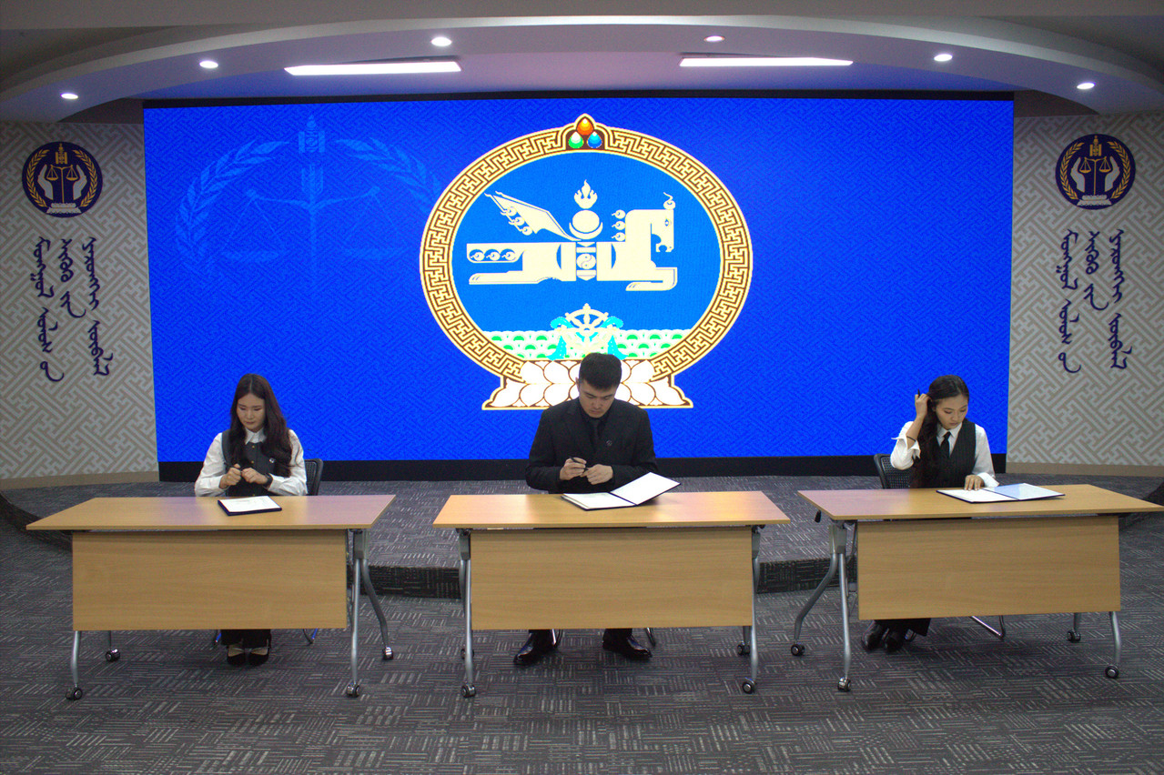 Шүүхийн захиргааны ажилтнууд Эх орон, ард түмнийхээ төлөө эрдэм чадлаа зориулж, Монгол Улсын хууль, ёс зүйн хэм хэмжээг чанд сахиж, үндэсний язгуур ашиг сонирхолд захирагдан албан үүргээ үнэнч шударгаар биелүүлэхээ тангараглав.