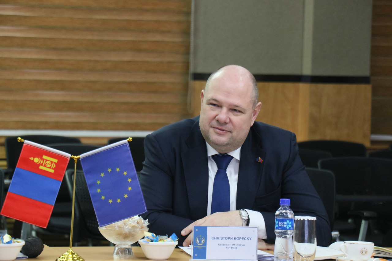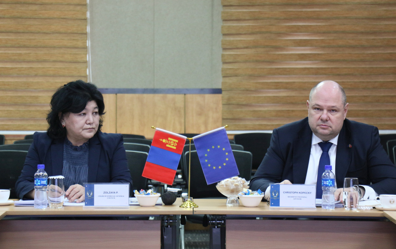 Суурин зөвлөх Кристоф Кофецки Шүүхийн ерөнхий зөвлөлийн шинэ дарга, гишүүд хүлээн авч уулзаж буй явдалд талархал илэрхийлж, Монгол Улсын шүүх эрх мэдлийн байгууллагууд Холбооны Бүгд Найрамдах Герман Улсын Олон улсын эрх зүйн хамтын ажиллагааны сантай хамтран Европын холбооны санхүүжилтээр хэрэгжүүлж буй хосолмол түншлэлийн “Твиннинг” төслийг танилцуулж, дэлгэрэнгүй мэдээлэл өглөө.