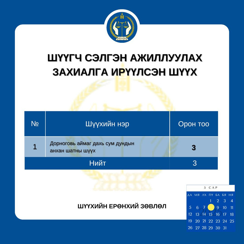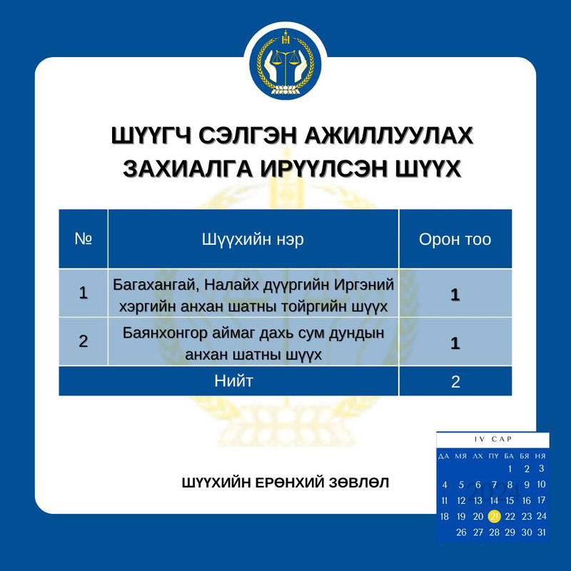 Шүүхийн иргэдийн төлөөлөгчийн оролцооны мэдээ