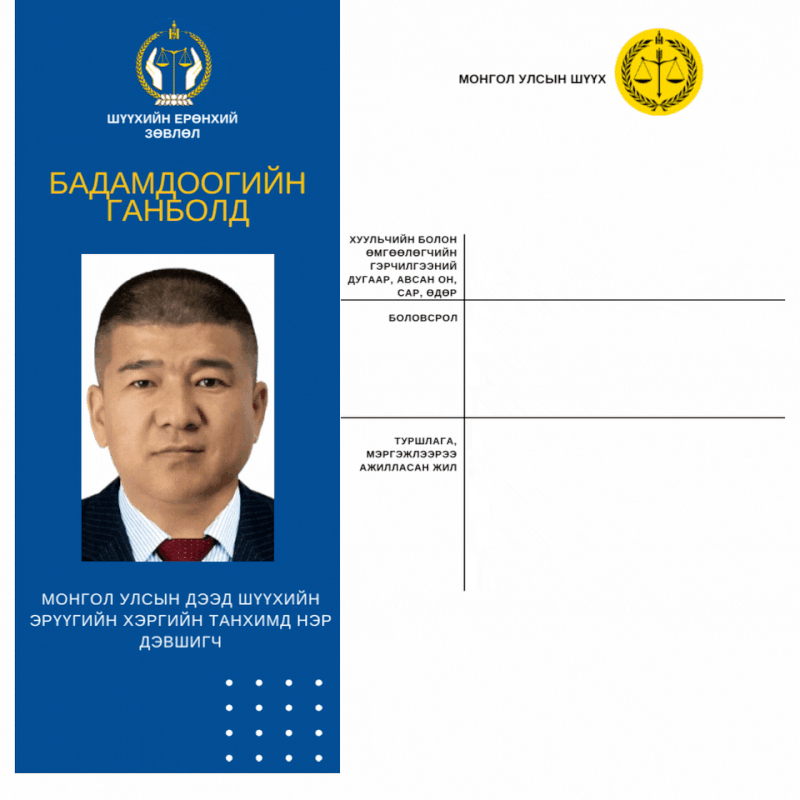 Мөн Шүүхийн тухай хуулийн 33.5 дахь хэсэгт заасны дагуу иргэд, олон нийт эдгээр нэр дэвшигчийн талаар сонирхсон асуулт, саналаа 14 хоногийн хугацаанд [email protected] цахим хаягаар ирүүлнэ үү.