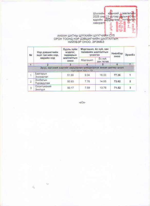 Сонгон шалгаруулалтын нийлбэр оноо болон эрэмбэтэй танилцана уу.