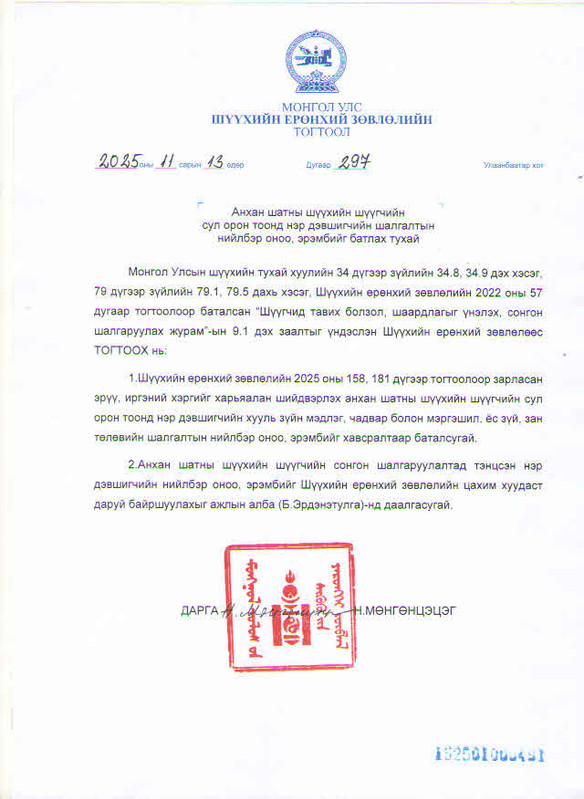 Эрүү, иргэний хэргийг харьяалан шийдвэрлэх анхан шатны шүүхийн шүүгчийн сул орон тооны сонгон шалгаруулалтын мэргэшил, ёс зүй, зан төлөвийн шалгалтыг өнөөдөр буюу 2025 оны 11 дүгээр сарын 13-ны өдөр зохион байгууллаа.