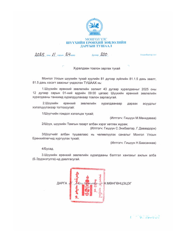 Шүүхийн ерөнхий зөвлөлийн ээлжит хуралдааны тов