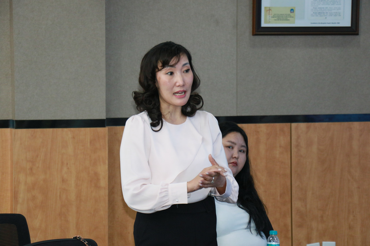 Эвлэрүүлэн зуучлагчдын зөвлөлийн гишүүн Б.Энх-Эрдэнэ Монгол Улсын шүүх дэх эвлэрүүлэн зуучлах ажиллагааны өнөөгийн нөхцөл байдал, Эвлэрүүлэн зуучлагчдын зөвлөлийн үйл ажиллагаа, сургалтын хөтөлбөрийн агуулга, хэрэгжүүлж буй төсөл, арга хэмжээний талаар дэлгэрэнгүй танилцуулга хийв.